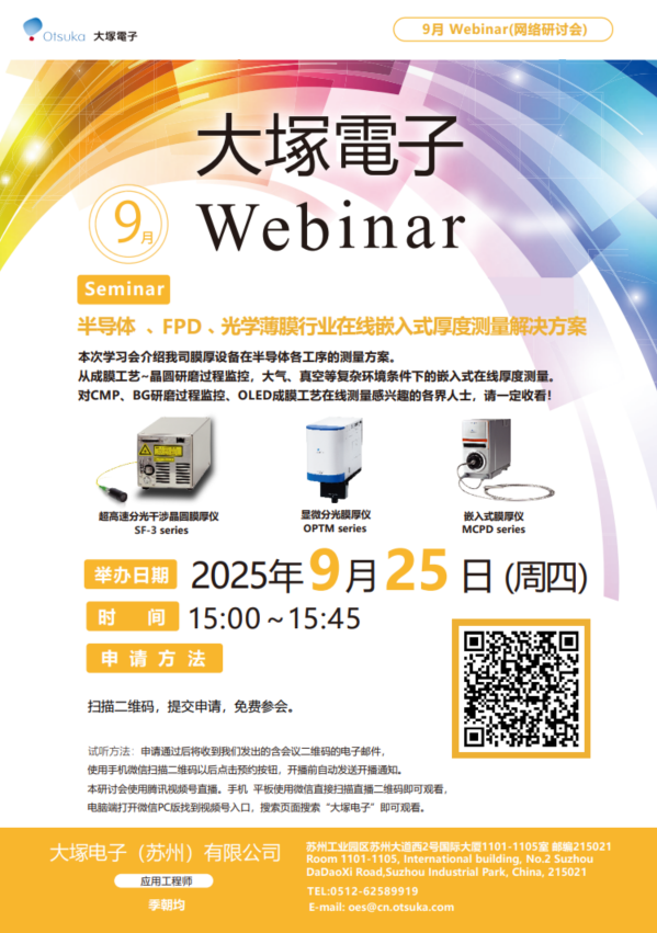 本次學(xué)習(xí)會(huì)介紹我司膜厚設(shè)備在半導(dǎo)體各工序的測(cè)試方案。從成膜工藝~晶圓研磨過程監(jiān)控。大氣、真空等復(fù)雜環(huán)境條件下的嵌入式在線厚度評(píng)價(jià)。對(duì)CMP,BG研磨過程監(jiān)控,OLED成膜工藝在線評(píng)價(jià)感興趣的各界人士,歡迎收看。
